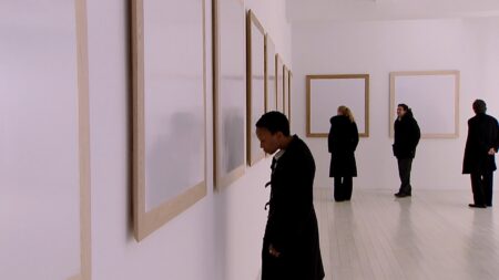 Drawing from the diverse cultural and geographic makeup of his southern Californian community, Bradford’s work is as informed by his personal background as a third-generation merchant there as it is by the tradition of abstract painting developed worldwide in the twentieth century. Bradford’s videos and map-like, multilayered paper collages refer not only to the organization of streets and buildings in downtown Los Angeles, but also to images of crowds, ranging from civil rights demonstrations of the 1960s to contemporary protests concerning immigration issues.